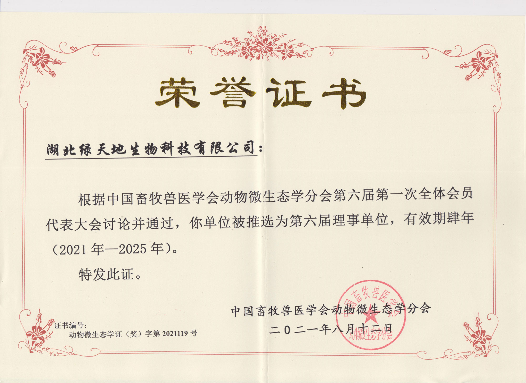 公司被推選為中國(guó)畜牧獸醫(yī)學(xué)會(huì)動(dòng)物微生態(tài)學(xué)分會(huì)第六屆理事單位